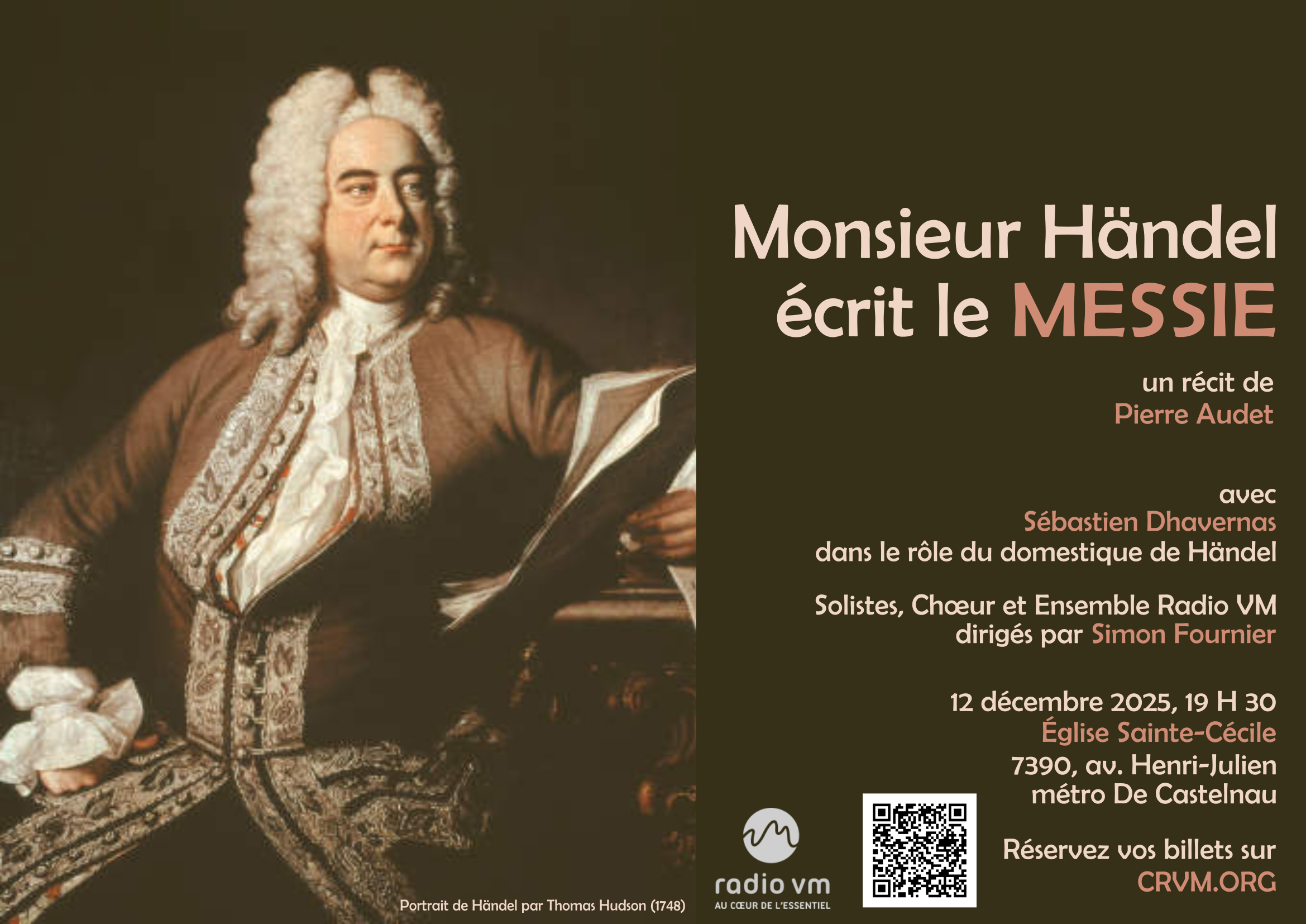 Un récit dramatique, drôle et captivant de l'auteur québécois Pierre Audet, mettant en vedette Sébastien Dhavernas dans le rôle du domestique de Händel